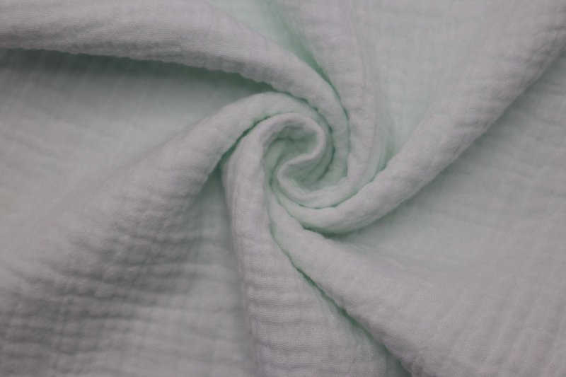 全棉双层染色皱布(也常称双层绉布 / 双层皱纱布),这是 100% 纯棉、双层结构并经染整形成稳定褶皱肌理的面料,是母婴、家居服饰的热门选择。 定义与结构