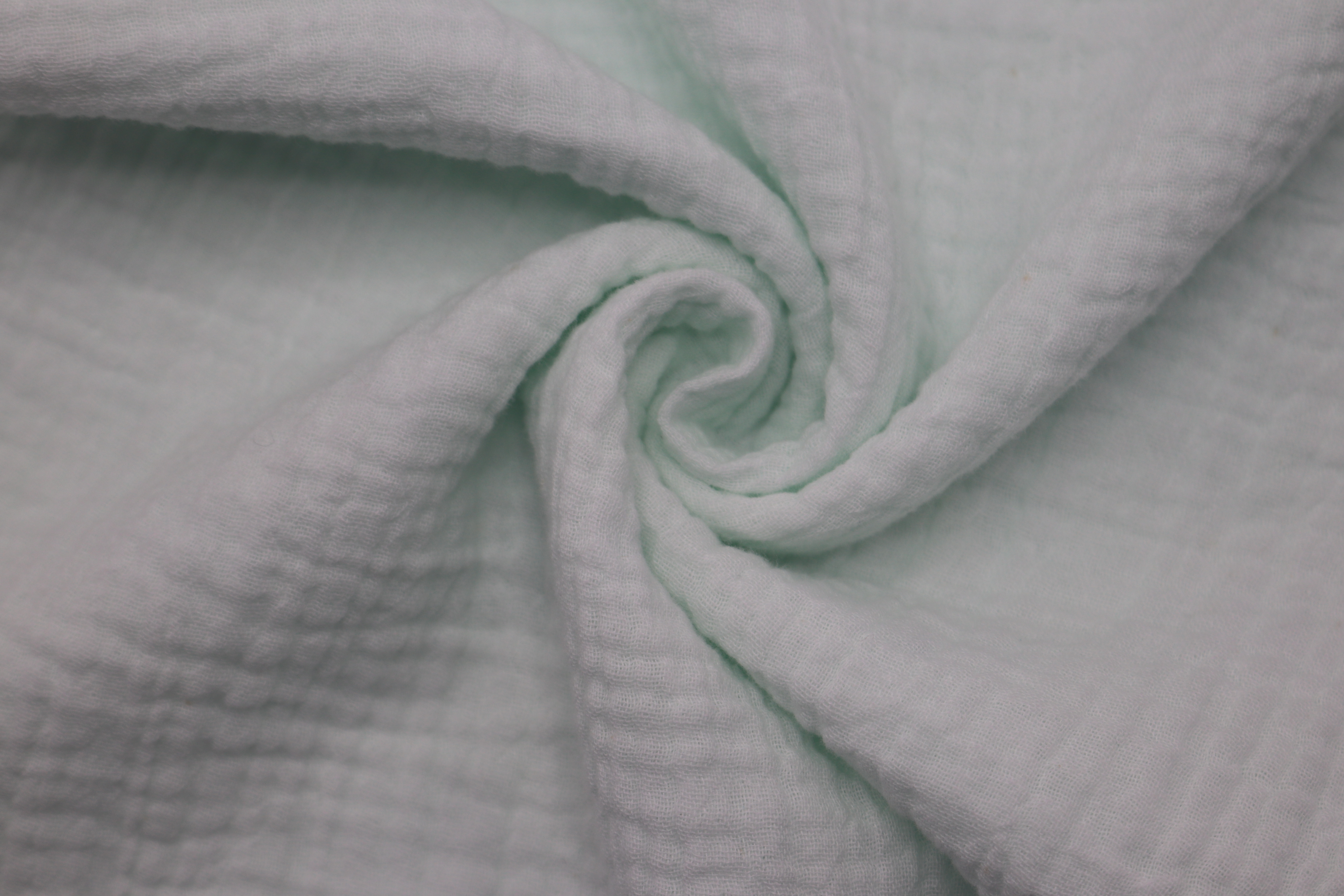 成分:100% 棉(常选新疆棉),无化纤;双层并非复合,而是两层面纱在织造时通过小节点固定,不粘连,形成天然空气层;